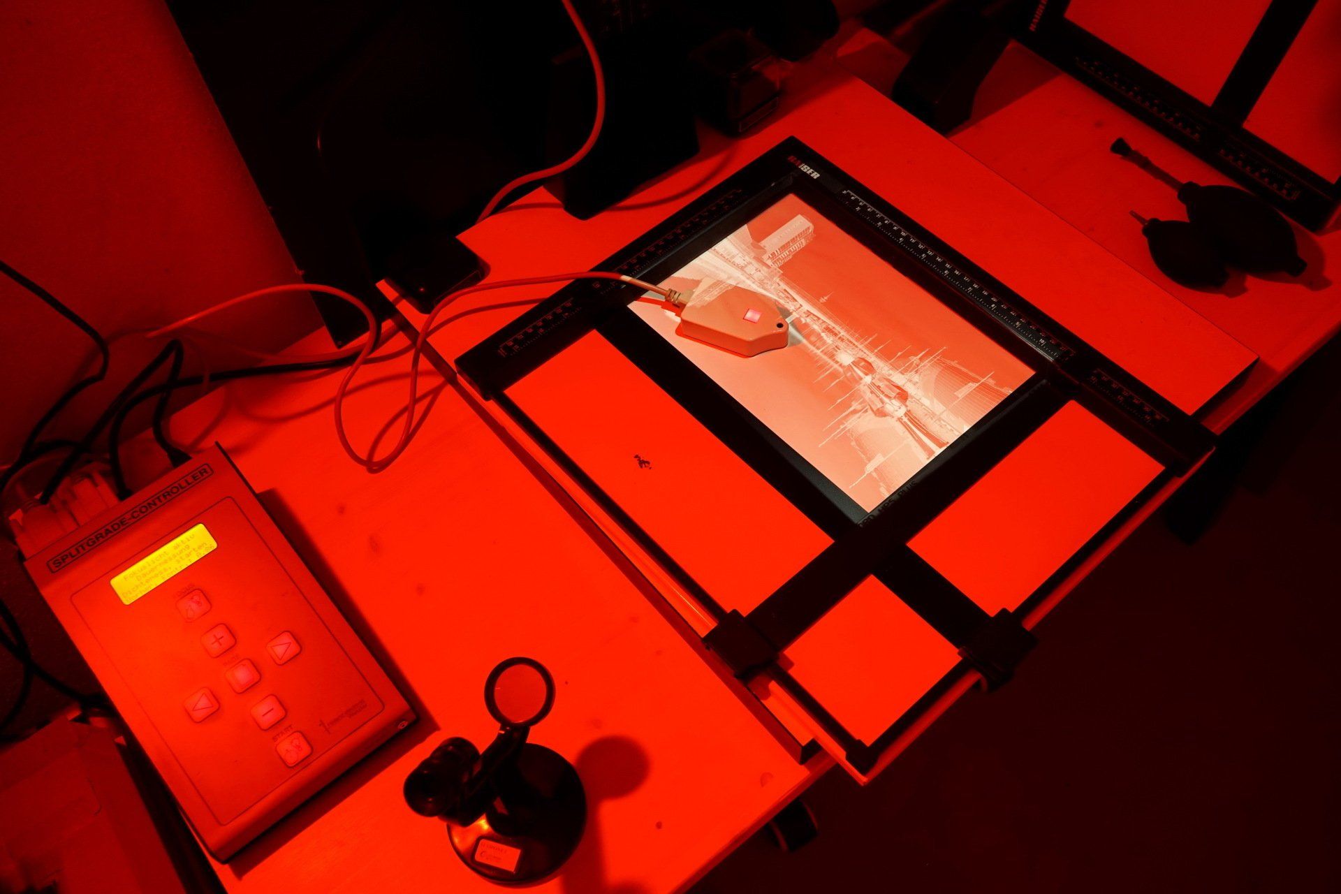 Mit meinem Umzug von Leipzig in meine alte Heimatstadt Pirna habe ich mir in den eigenen vier Wänden einen kleinen Traum erfüllt. In einem länglichen Raum im Keller habe ich mir eine eigene Dunkelkammer eingerichtet, in welcher ich sowohl Negative als auch Positive entwickeln kann.